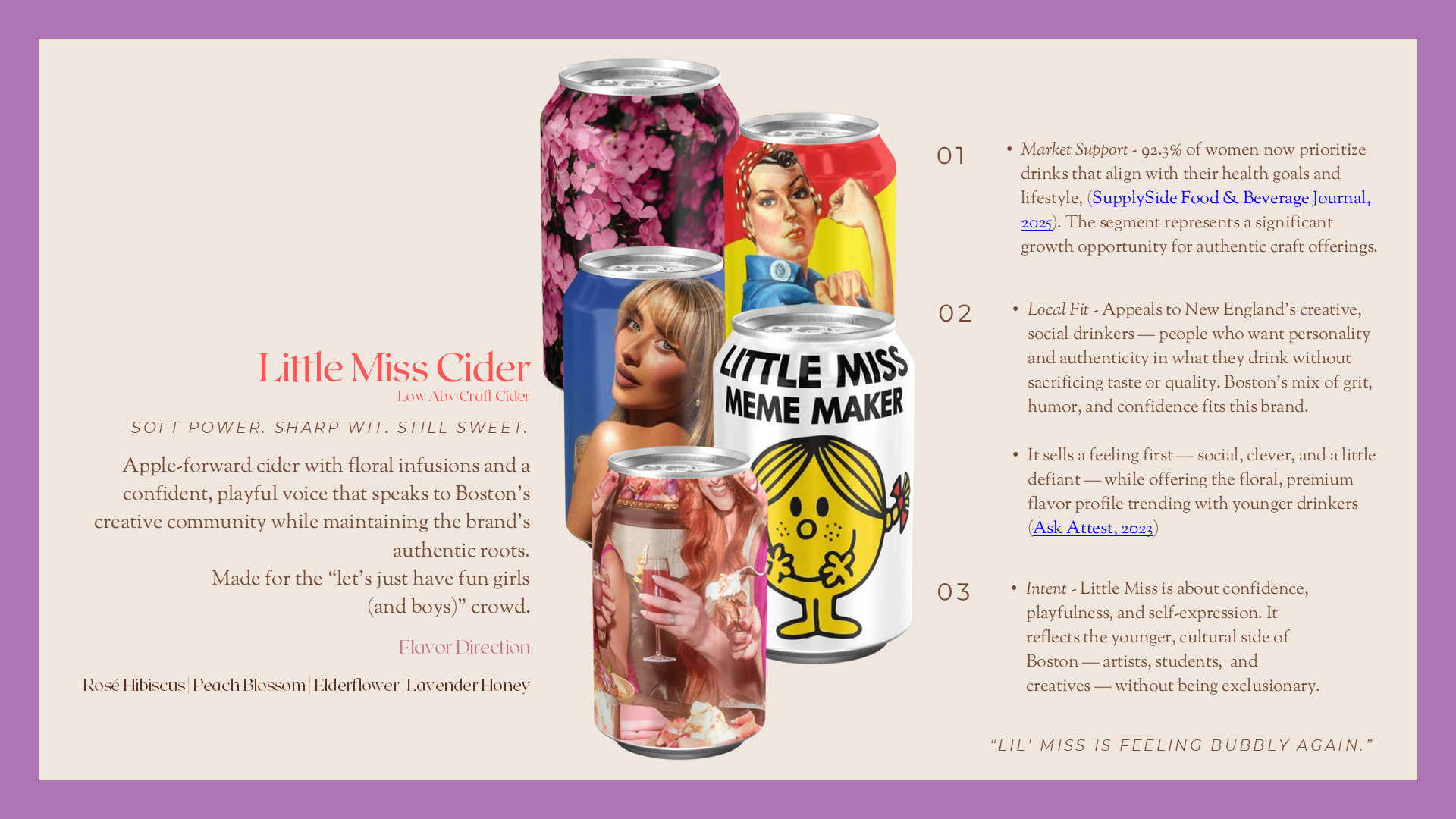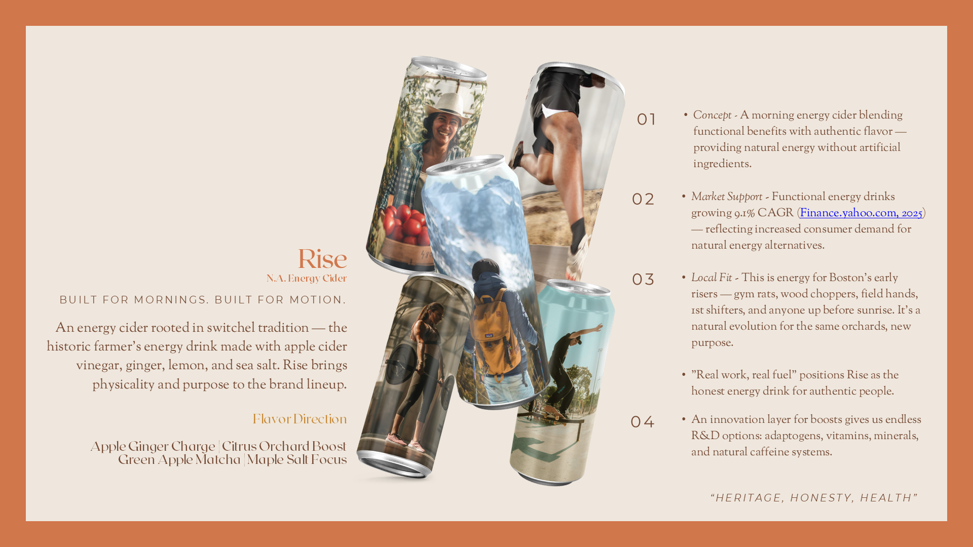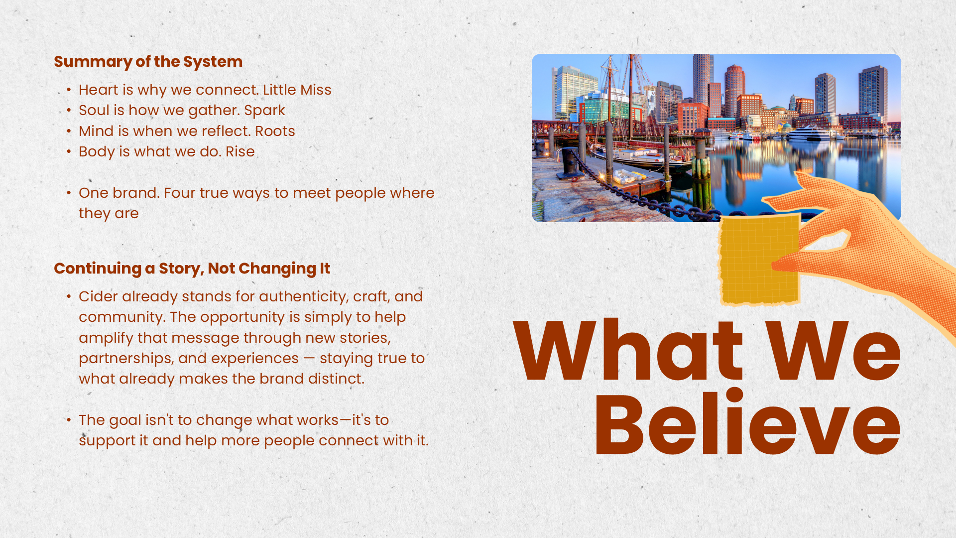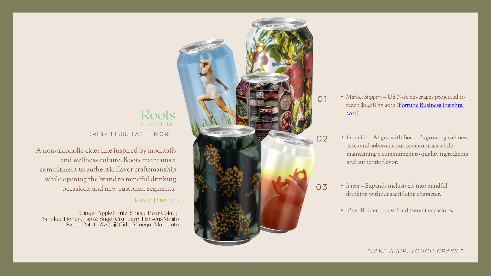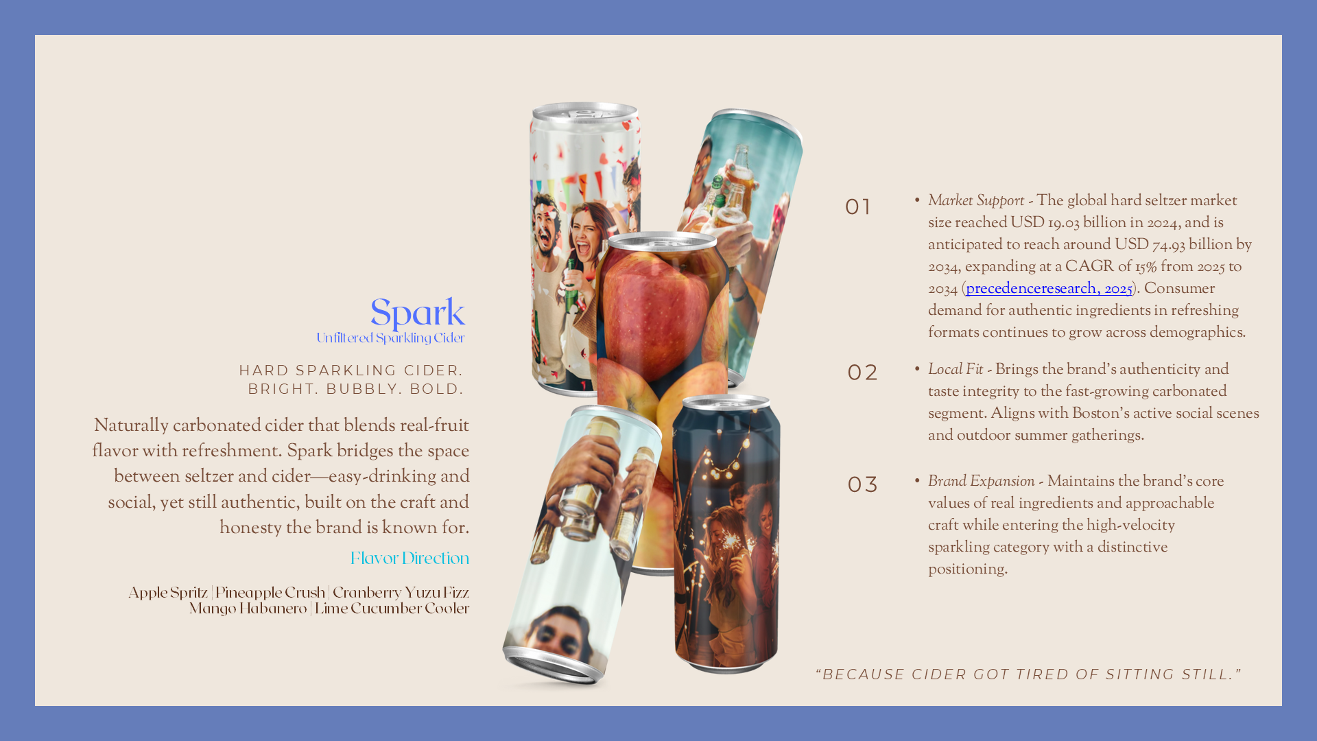 A speculative pitch created for an attempt to professionally beg for a chance to be hired — exploring product architecture, line extensions, flavor strategy, and brand storytelling for a Boston-based cider brand.